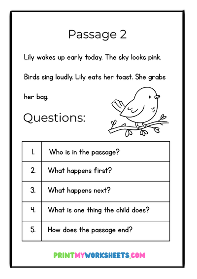 The worksheets also support cognitive development by encouraging attention, memory, and reasoning. Students must remember details from the passage, follow instructions, and organize their responses. Over time, this process helps strengthen focus and persistence.