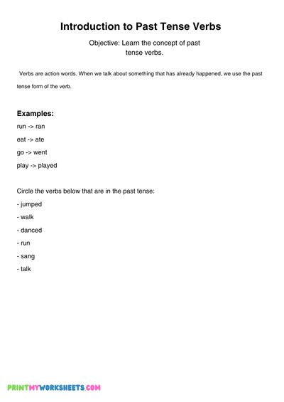 The past tense is a crucial grammatical concept that children must understand as they develop their speaking and writing abilities. Understanding how actions are expressed in the past helps learners write accurate stories, communicate clearly, and comprehend text effectively.