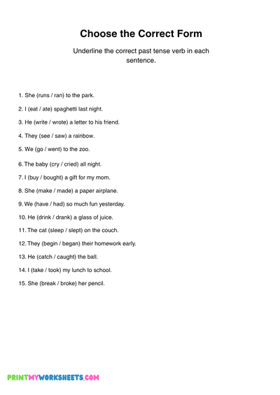 The 2nd Grade Past Tense Worksheets PDF is a printable, easy-to-use learning tool aimed at building fluency in using regular and irregular past tense verbs. Children will enjoy practicing verbs like run/ran, jump/jumped, and go/went through a combination of matching, writing, and drawing lines between verbs.