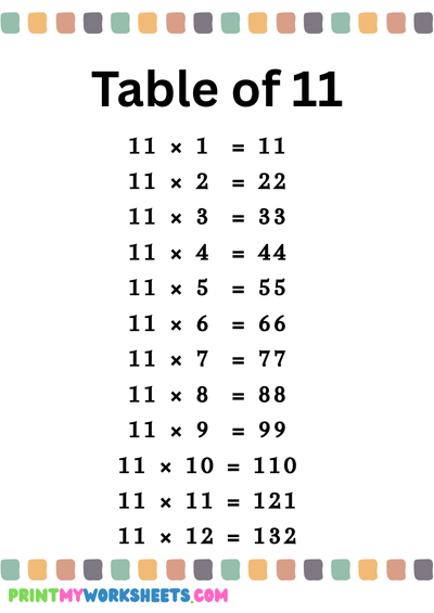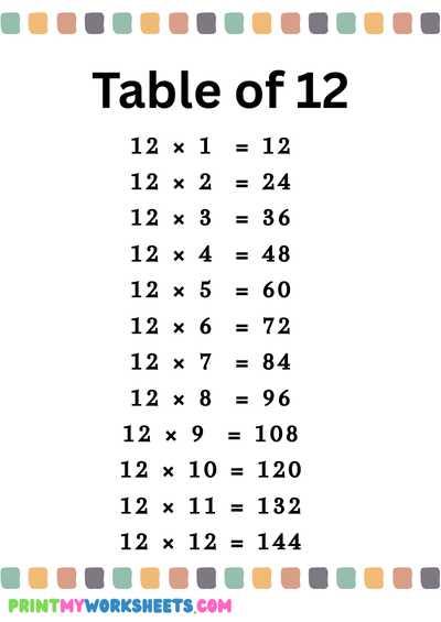 Covers multiplication tables from 10 to 12