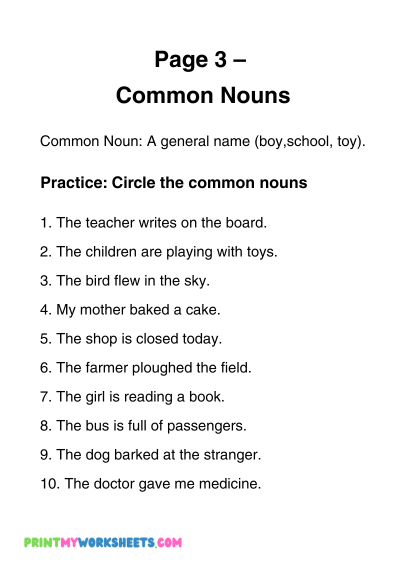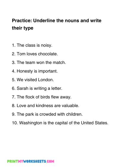 3rd Grade Nouns and Their Types Worksheets PDF | Free English Downloadable