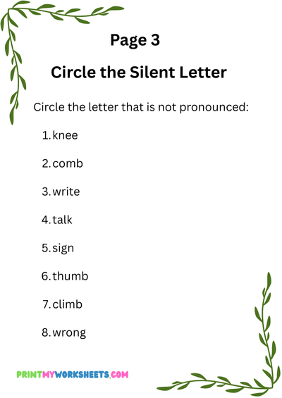 3rd Grade Silent Letter Worksheets PDF | Free English Downloadable
