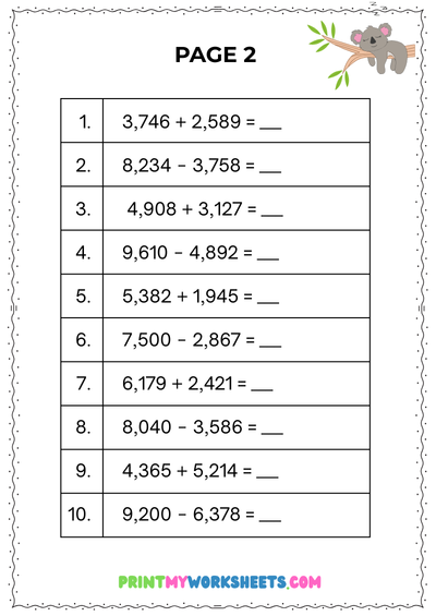 At this level, students work with larger numbers, multi-step problems, and real-world math situations that require accuracy and reasoning. Regular practice with addition and subtraction helps strengthen number sense and prepares students for multiplication, division, and higher-level math. This printable worksheet set provides focused skill-building in a clear, student-friendly format that encourages confidence, independence, and steady progress throughout the school year.