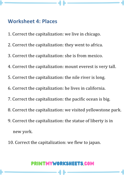 4th Grade English Capitalization Worksheets Free PDF | Grammar Practice for Kids