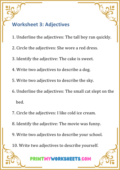 4th Grade Parts of Speech Worksheets PDF for US homeschool parents, teachers, and classrooms. Engaging grammar activities teach nouns, verbs, adjectives, adverbs, and more. Download, print, and help kids build strong grammar foundations, improve writing, and boost comprehension skills with interactive English practice tailored for elementary learners.