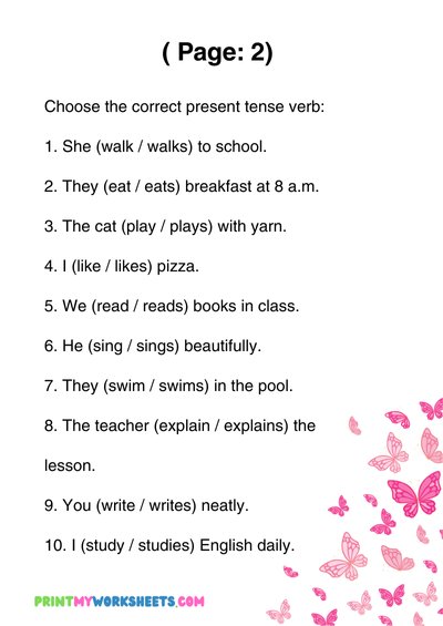 4th Grade Present Tense Worksheets PDF | Free English Downloadable