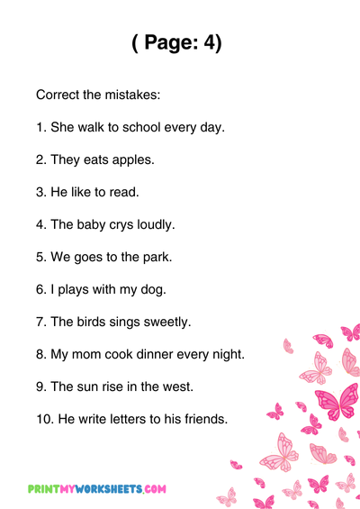 These worksheets focus on the present tense—a key building block of English grammar. Students practice forming present tense verbs, subject-verb agreement, and using present tense in sentences. Activities include fill-in-the-blank exercises, sentence rewriting, matching, and short writing prompts that allow children to apply grammar rules in context.