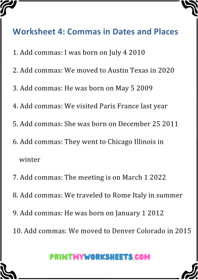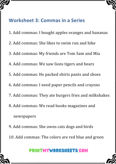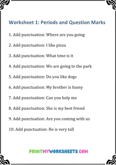 4th Grade Punctuation Worksheets PDF for US homeschool parents, teachers, and classrooms. Engaging activities teach periods, commas, exclamation marks, and more through interactive exercises. Download, print, and help kids improve grammar, sentence fluency, and writing confidence while strengthening reading comprehension and communication skills with fun punctuation practice.