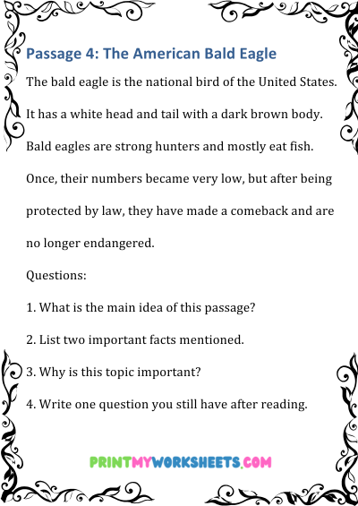 4th Grade Reading Comprehension Worksheets PDF for US homeschool parents, teachers, and classrooms. Engaging passages with exercises strengthen comprehension, vocabulary, and critical thinking. Download, print, and help kids build confidence, improve academic performance, and enjoy reading with fun, structured practice designed for 4th-grade learners.
