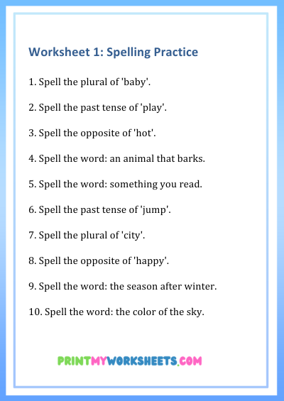 4th Grade Writing, Spelling, and Phonics Worksheets PDF | Free English Download
