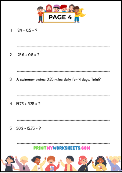 Each activity encourages structured thinking. Students learn to underline key information, identify the operation needed, and organize their solution clearly. By connecting decimal operations to everyday situations, learners gain a deeper understanding of how decimals function outside the classroom.