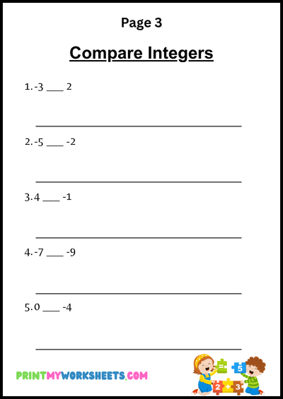 Click below to access the free 7th grade integers and number line worksheet