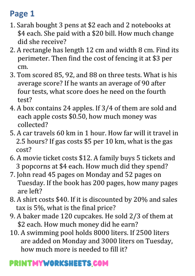 7th Grade Multi-Step Word Problems Worksheets PDF | Free Math Downloadable