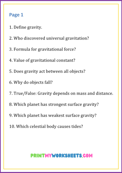 Introduce your child to the wonders of physics with our 8th Grade Gravity Worksheets | Free Downloadable PDF, designed to support the US curriculum and ideal for homeschool parents, teachers, and tutors.