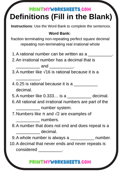 Download our Rational and Irrational Numbers Worksheet today and make learning math clear, engaging, and fun!