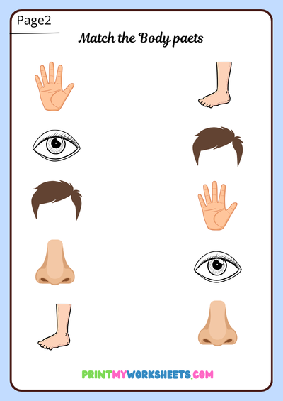These kindergarten body parts worksheets focus on helping students recognize, name, and describe common body parts. Activities are designed to match the developmental stage of kindergarten learners, using clear visuals and simple instructions.