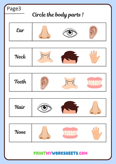 Click below to access the free Kindergarten Body Parts Worksheets PDF Free