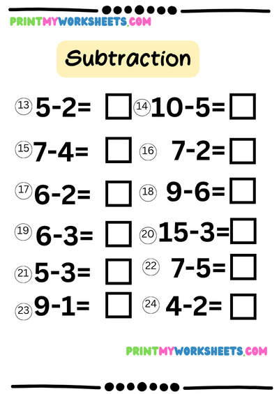 With colorful visuals and beginner-friendly exercises, children will practice subtracting single-digit numbers, improving their number sense, counting skills, and confidence in solving basic problems. Whether used in the classroom or at home, this printable worksheet aligns with foundational math standards and helps set the stage for future success.
