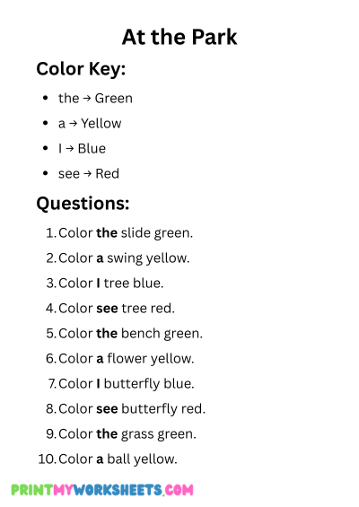 Pre-K Sight Word Worksheets PDF | Free English Downloadable