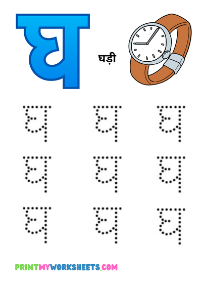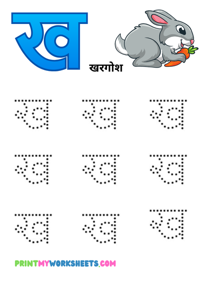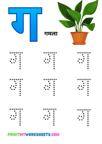 The Varnmala (Hindi alphabet) consists of Swar (vowels) and Vyanjan (consonants). Our worksheets guide kids through each letter step by step with dotted outlines for tracing, bold letters for recognition, and ample space for handwriting practice. These activities not only improve fine motor skills and letter formation but also support early literacy development.